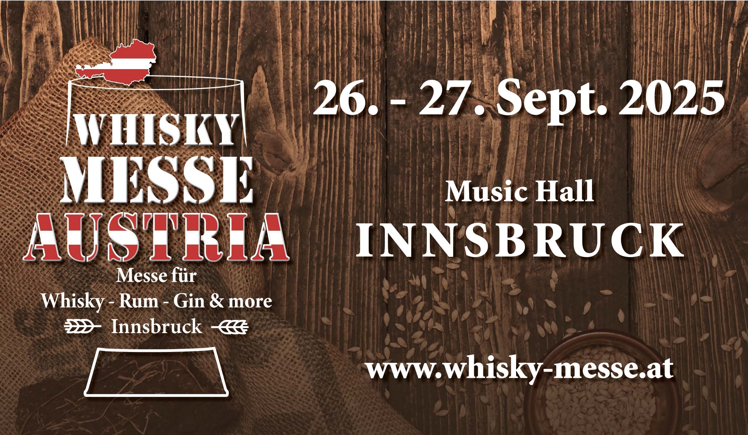 Am 26. und 27. September 2025 findest du uns als Aussteller in der Music Hall Innsbruck bei der Whisky Messe Austria.